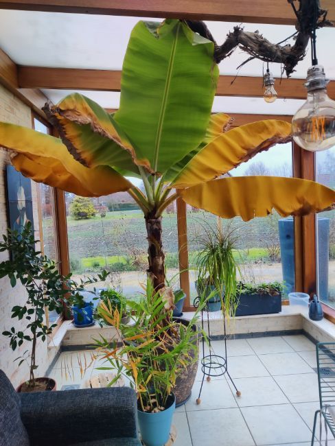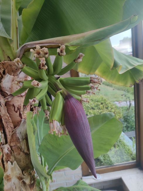 Binnenkort een bloem en hopelijk bananen te showen. Het lijkt me wel een dunne bloemknop te zijn (is mijn eerste bananenplant maar in vergelijking met Youtube) dus verwacht niet veel bananen aan de tros. Wel leuk dat het waarschijnlijk gaat lukken.