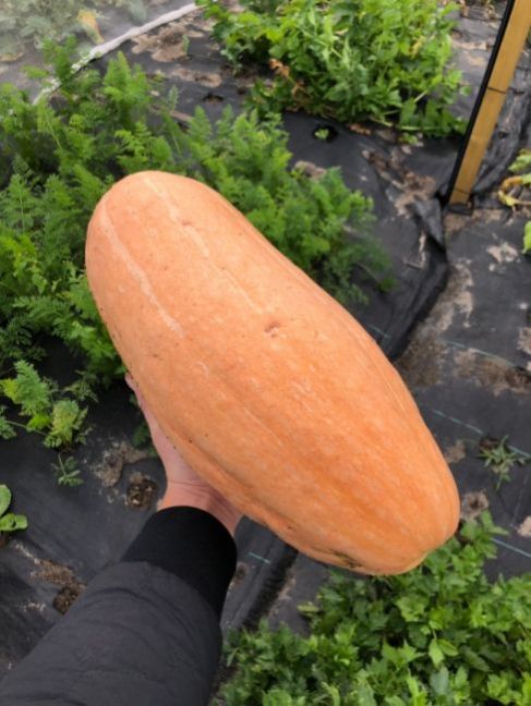 Pompoen Banana pink geoogst. Dit is de tweede pompoen en ik gok een kilootje of 5.