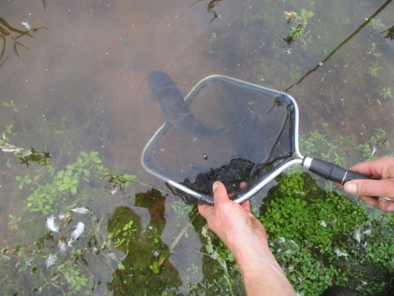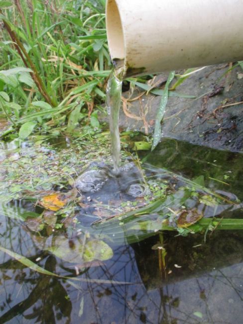 We hebben de vijverbakken leeggehaald. De vissen zwemmen nu in onze echte vijver, en veel van de planten liggen op een hoop om te composteren.