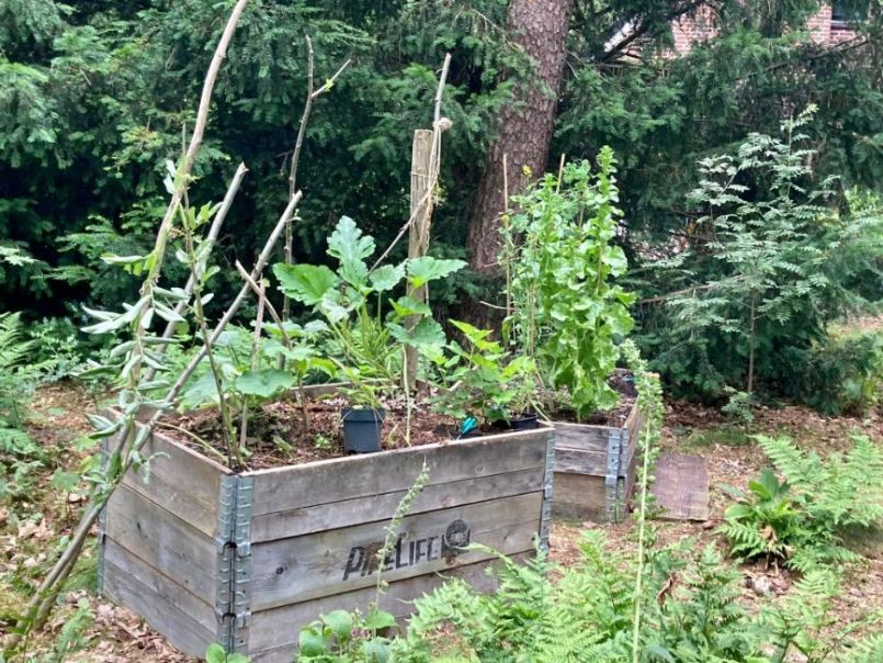 Als laatste mijn kruidenperk. Het staat er wel mooi bij, in gedachte gehouden dat dit een veld Japanse duizendknoop was. Ik ben blij dat ik besloten heb alle kruiden in potten in te graven zo kan ik het perk goed surveilleren.