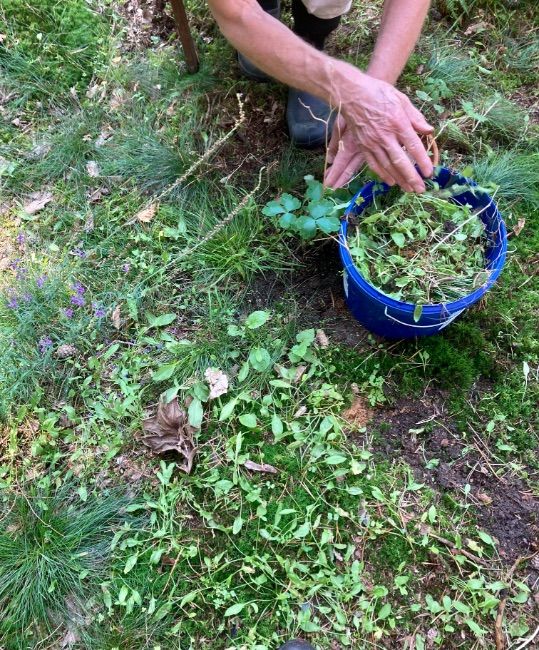 We blijven schapenzuring uittrekken, daar hebben we eigenlijk meer last en werk van dan van de Japanse duizendknoop. Rustig doorgaan en steeds een stuk, hier vanmiddag weer daar waar ook mooi sterrenmos groeit.