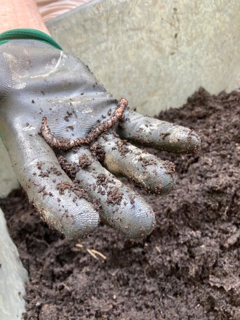 We zijn er blij mee en ook met de aarde die we terug hebben gedaan in de potten. Barstensvol met bodem leven, grote en kleine beestjes.