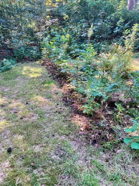 Daar hebben we goed gebruik van gemaakt, we hebben de frambozen, een dikke laag gegeven, zo ook de twee peertjes, het appelboompje. Alle zwarte bessen ( ik heb er nu 6) en ook de Tayberrie en de druif, de vijgen en de rodondendrons aan de takkenwal.