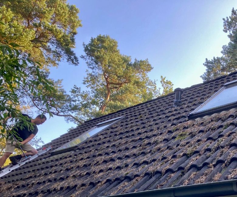 Verder was het tijd om ons dak schoon te maken, daar krijgen we gelukkig hulp bij. Het dak lag vol met dennennaalden en mos, hier en daar groeiden er winterpostelein op het dak zagen we in het voorjaar.