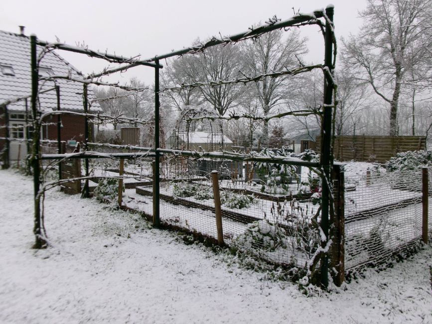 Joep heeft nog een mooi klimrek gemaakt in de kas, voor meloenen of komkommers of of of.