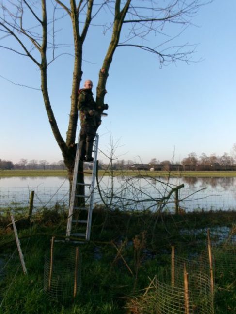 Maar ook een flinke conifeer, en heel wat kleinere coniferen die we hebben 'getopt' wat ook best wat hout opleverde.