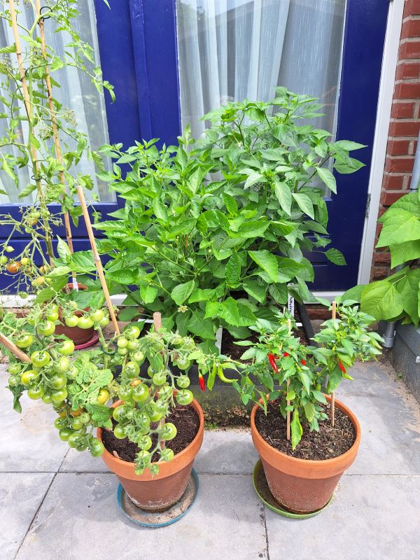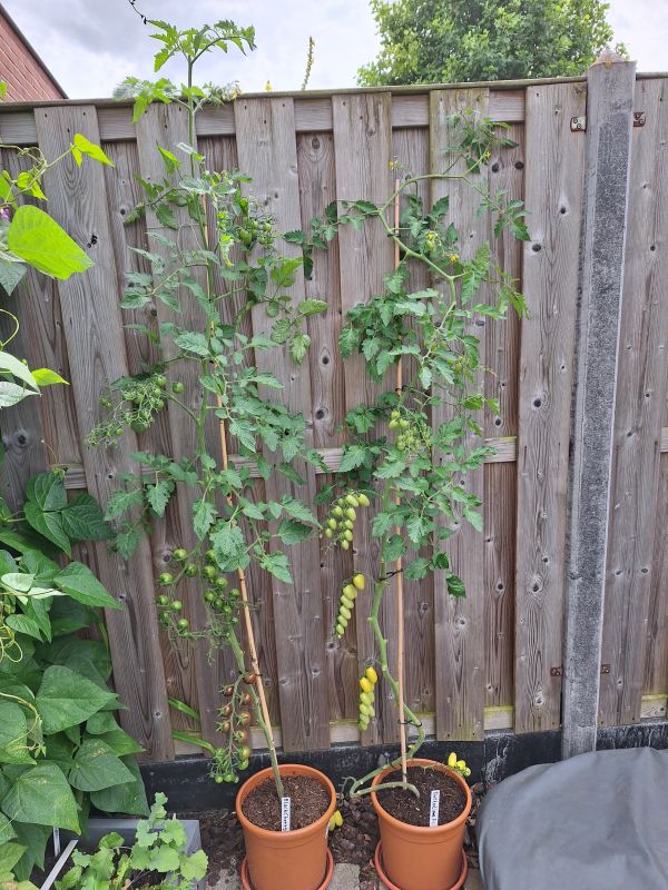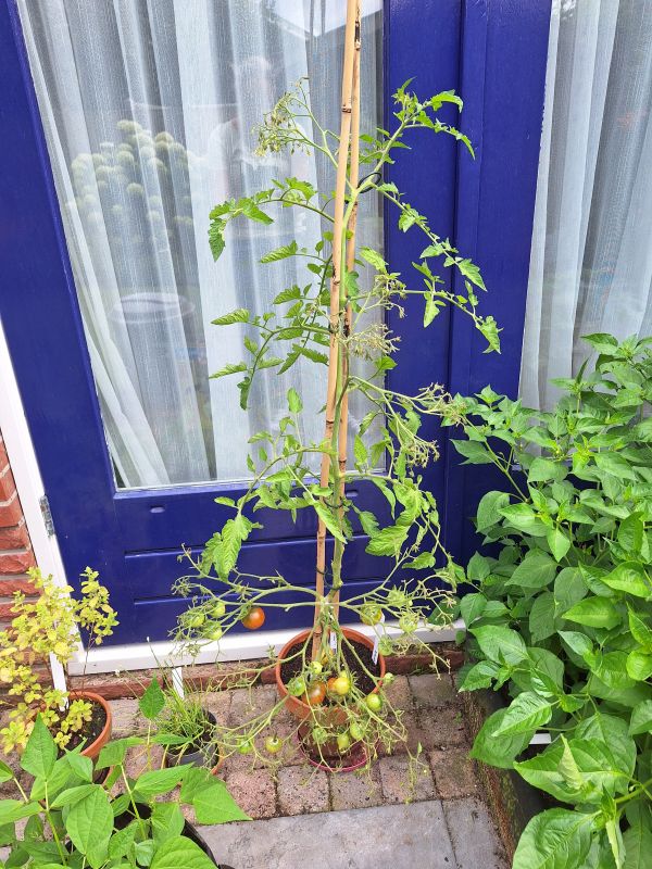 Wat afwisselende maand. Het begon met een hittegolf. Toen hebben de tomaten zelfs binnen gestaan om ze te beschermen tegen de ergste hitte. Gelukkig werd het al snel wat koeler. Rond de tijd dat we op vakantie gingen 17 juli werd het volgens mij zelfs erg regenachtig. Helaas is de San Marzano tomaten plant daaraan ten onder gegaan. Deze heb ik snel verwijderd toen we weer thuis waren. De andere 4 planten gaan tot nu toe nog goed. 🤞🏻