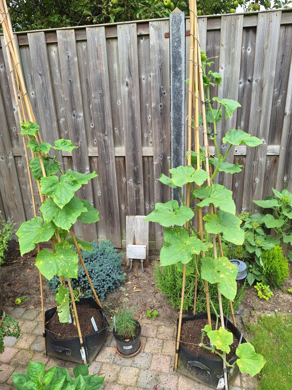 Ook de komkommer planten gaan goed. Ik denk nu zo'n 20 tot 23 komkommers geoogst en er komen er nog meer aan.