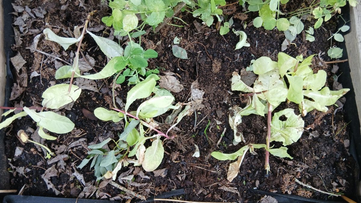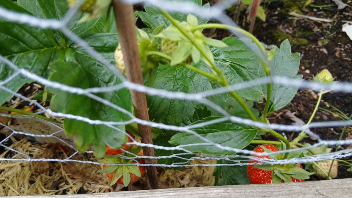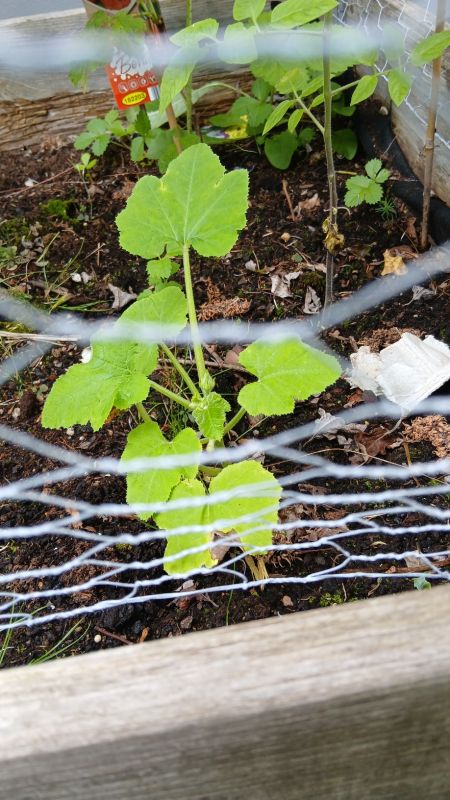 Het andere vak met 'belangrijk spul' wordt nog wel goed beschermd door t gaas....hoop m.n. dat ze van mn enige overlevende courgette afblijven, want die begint net te bloeien!