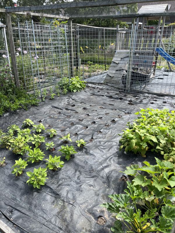 Vanavond nog even snel naar de moestuin, om de plantjes op de warme dagen voor te bereiden:
