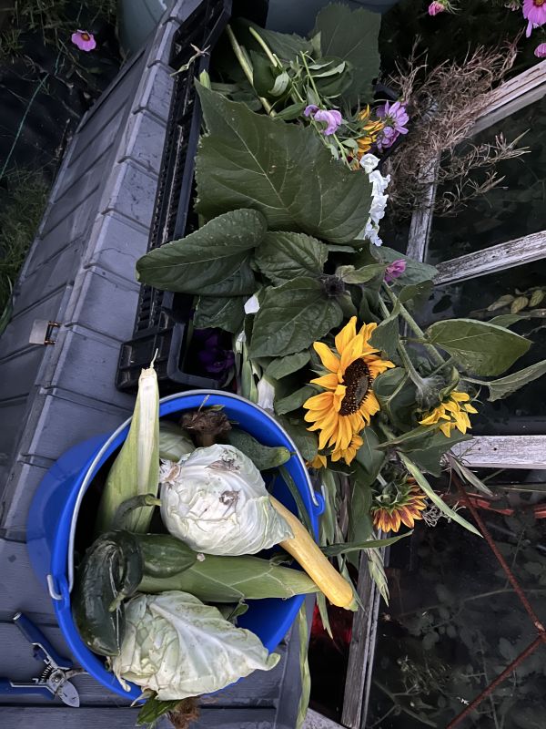 Aankomende week zoveel mogelijk inmaken! Nu 10 maïskolven geoogst die in potjes gepressurecanned gaan worden.