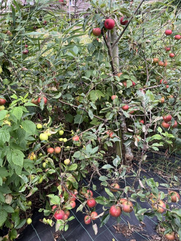 Trouwens… de foto van de pad is binnen de wortel anti-insektenkooi gemaakt! Ik vermoed dat hij een hoop ongedierte op afstand heeft gehouden in de afgelopen weken en als bedankje heb ik hem vrijgelaten… in ‘Apple paradise’
