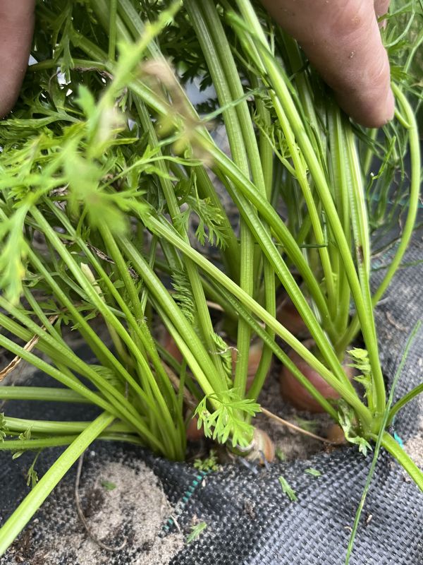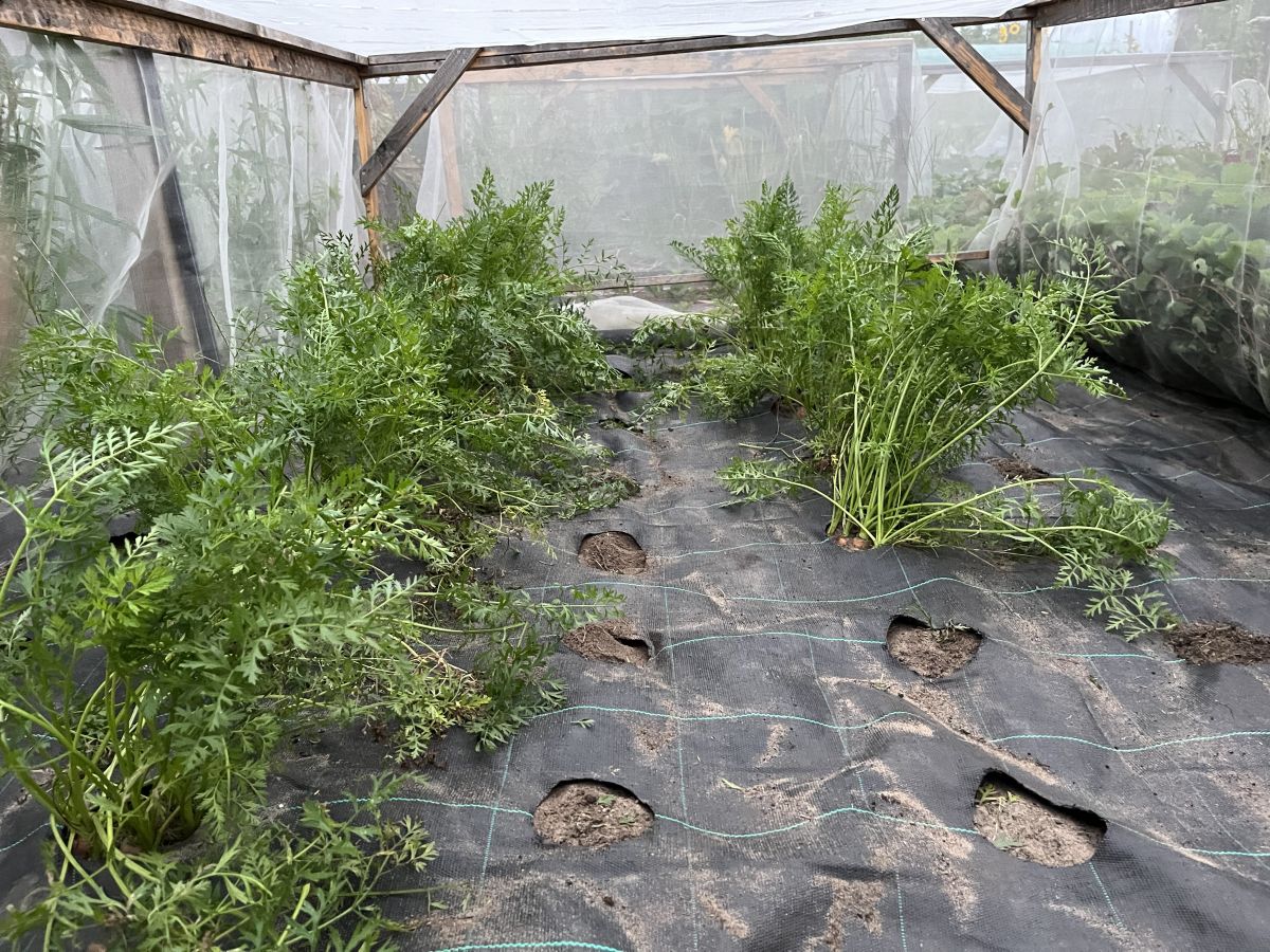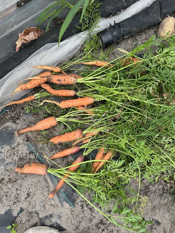 En de rijen tussen de wortels (waar in juni nog uien stonden heb ik ‘erg laat’ nog Ingezaaid met wortels… (ik denk trouwens dat hier nog minstens 6-8 kg aan wortels staat.). Over 3-4 weken plastic erover om het seizoen te rekken en kijken of we nog een winteroogst kunnen produceren.