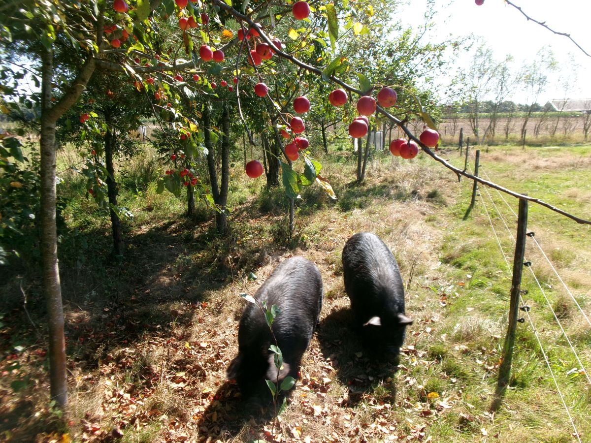 Ons (klein)vee vermaakt zich verder prima, vooral nu er nog meer fruit uit de bomen valt!