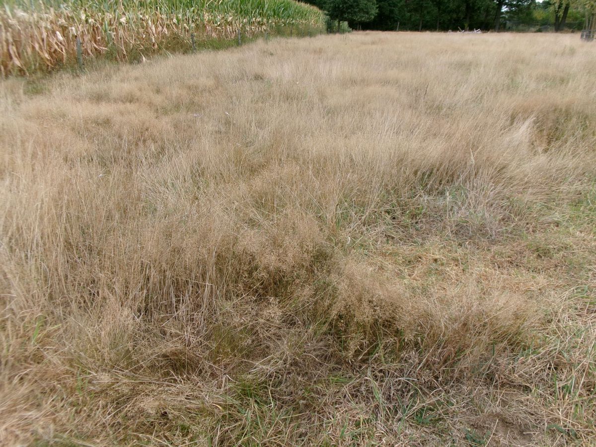 Maar binnen het bereik van de sproeiers is het wel mooi groen gebleven: