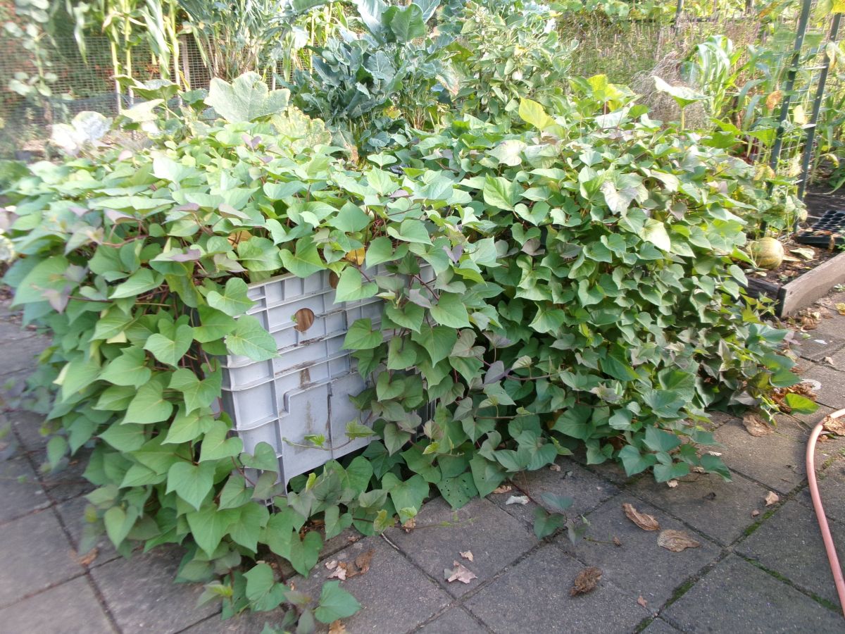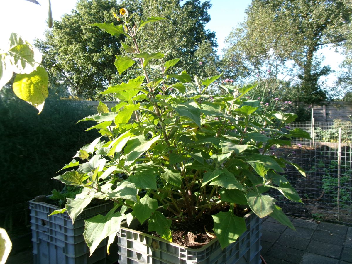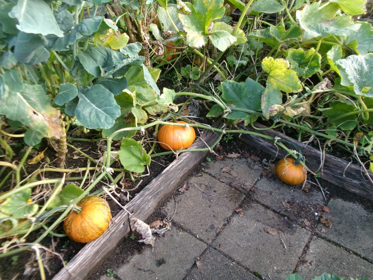 In de moestuin gaat het wel aardig. De pompoenen worden zichtbaar: