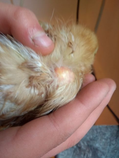 Ik heb thuis 4 kuikens van 6 weken oud. Gisteren ontdeckte ik bij een kuiken een grote tumor. Vandaag ben ik beter gaan kijken: ze hebben het allemaal. Ze zien verder gezond uit. De kuikens waren gevaccineerd tegen Marek, en hebben daar geen van de typische verschijnselen van. Doctor Google kon me niets vertellen, behalve misschien aviare leucose. Kan iemand me aanhand van de foto's vertellen wat voor ziekte het is? Mvg, DS