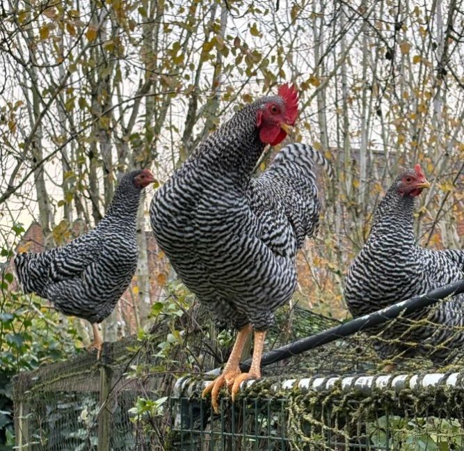 Als iemand medium kippen zoekt (te grote krielen) die goed leggen en niet broeds worden kan ik de Amrocks uit Lunteren aanbevelen. Adverteerde in het voorjaar op MP met broedeieren. Een is nu in de rui en gestopt met leggen. De andere legt nog steeds, vanaf het najaar van 2024. Ik vindt ze lomp groot naast mijn hollandse krieltjes maar het gaat wel heel goed samen nu ze 2 hokjes hebben , zodat ze kunnen kiezen waar ze gaan slapen. De laatste tijd is het steeds zo verdeeld: In het speelhuisje de 2 Amrocks en 2 (niet raszuivere) Hollandse krielen. In het oude hok slapen de 3 oude Hollandse krielen en de Rhode Island red kriel. Lekker, die aangekoekte kaasfondue op de bodem.