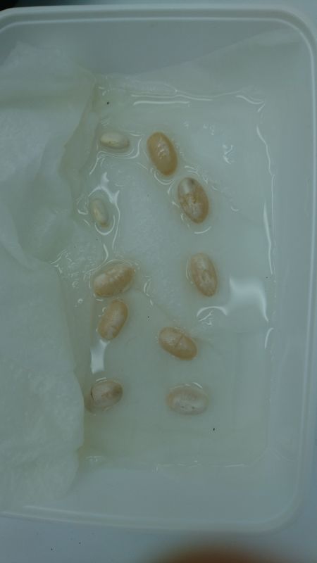 1. Klein experiment deze winter om snijbonen in de kweek tent te groeien. Ruimte over, dus waarom niet? Gister begonnen met voorweken: Vandaag: Ze zijn flink gezwollen. Twee niet? Waarom? Andere hebben een breukje? Gaat dat nog goedkomen? Te lang in water gehad? Gaan straks de potgrond in. Tips?