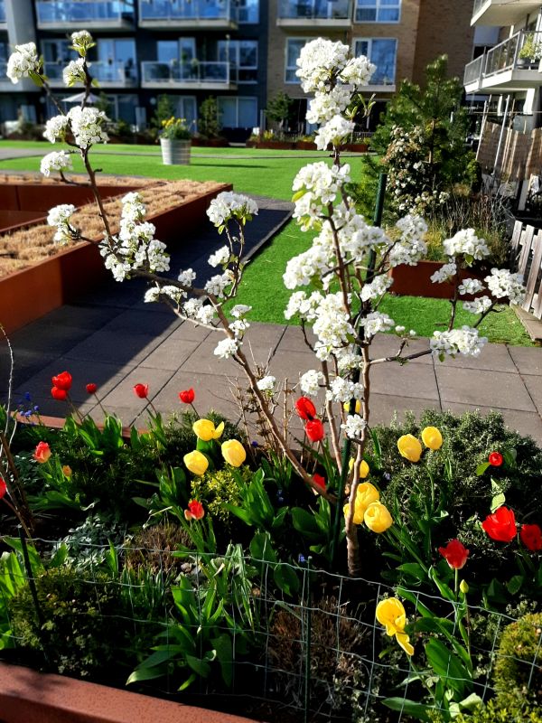 Perenboom bloemsem, dit is een jaar dat deze enorm uitbundig bloeidt. Helaas zit er gok ik een ziekte in het boompje. Want er waren 2 takken geheel zwart afgestroven. Dus zal een infectie zijn, dus misschien één van de laatste jaren dat ik van de bloesem kan genieten.