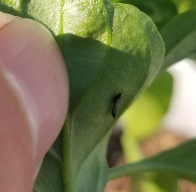 3. Volwassen thrips: Thrips nog niet volwassen, en al bijna te klein om met het blote oog te zien. En nog kleiner, de nymfen, deze kan je het best zien langs de nerven van het blad: