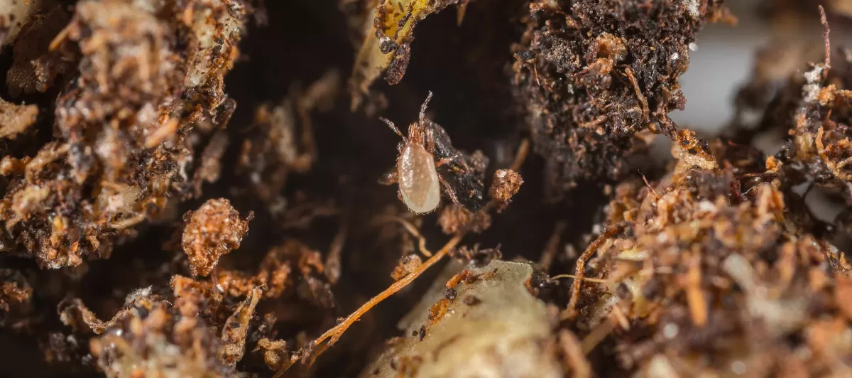 Heel lastig te zien. Heb je een wit a4tje? Even beetje van de grond met beestjes er op scheppen, beetje verspreiden. Dan duidelijke video of foto maken als je de beestjes op het witte a4tje ziet lopen. Dan kunnen we het beter zien. spint mijten denk ik ook niet, maar zou geen andere soorten mijten uitsluiten zoals de roofmijten.