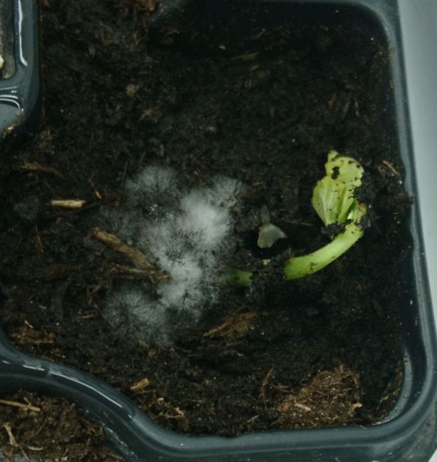 De eerste is ontkiemd en staat boven. Duurde 9 dagen. Wel wat te vochtig als ik de schimmel zo zie, maar dat wrijf ik morgen wel even weg.