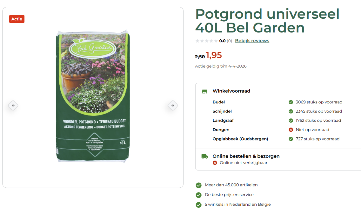 Nee ik heb deze potgrond niet gewoon een tip voor de liefhebber. Te ver weg.