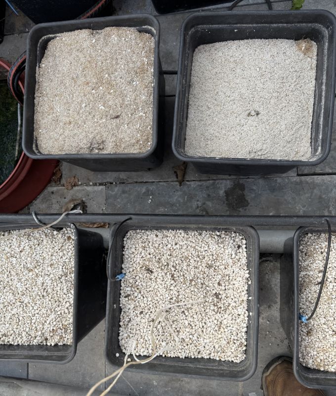 Een ondankbaar klusje opgepakt, na 5 jaar gebruik werd het tijd om de perliet die ik gebruik eens op te schonen van alle fijne delen en wortelresten, het zeven gebeurd met vliegengaas als selectiemaat. Het resultaat is het verwijderen van bijna 20% fijnstof uit het perliet, de fijne stofdelen gaat in de compostbak of gebruik ik als toplaagje bij zaaigoed. De bovenste 2 potten zijn de uitgezeefde delen en onder het geschoonde perliet, we kunnen er weer 5 jaar tegenaan.