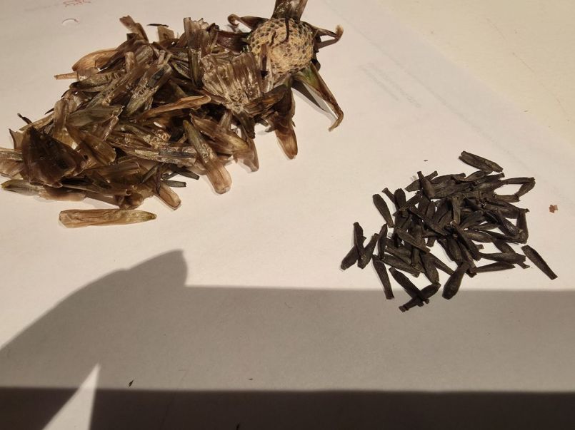Er zitten best veel zaden in een dahliaknop. En dan te bedenken dat ik er ongeveer 20 had geplukt, en er hangen er nog een kleine 20. Wel 3 rassen door elkaar, en die zijn dan vast ook wel gekruist dus het wordt een verrassing wat eruit komt.