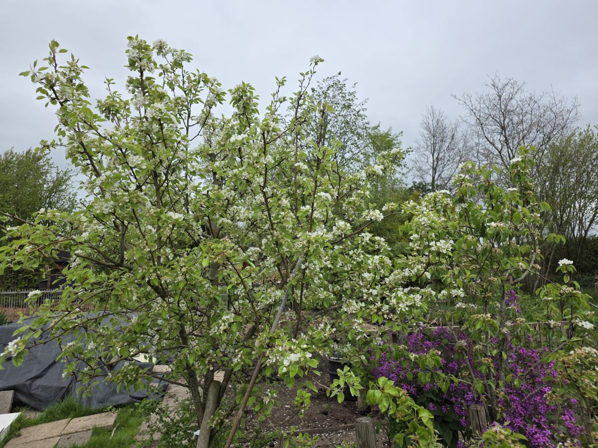 Oh, ik heb nog meer bloemen. Russische bladkool Wat appel enten van een jaar of 2 geleden Rozemarijn Witte judaspenning Moerbei, valt niet echt onder bloemen maar meer onder bloesem Pawpaw Regina kers Winterrietpeer (links) en Charneux (rechts)