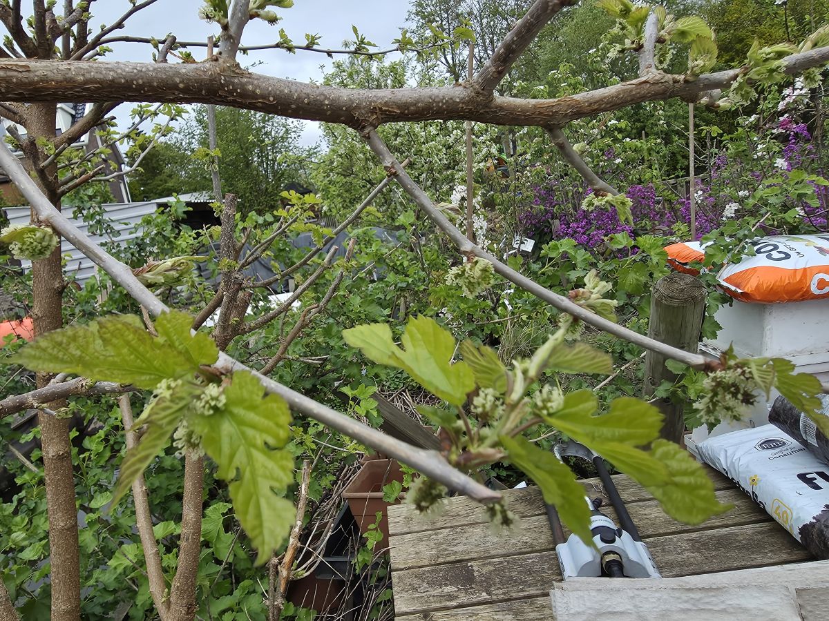 Ja, maar ik heb ook 2 jonge stekken naast de schuur bij het huis geplant. De Vanessa en Velika. En binnenkort nog de Vera, die kreeg ik afgelopen herfst op de MTFD van Weknow. En er is ruimte voor nog eentje. Alhoewel ruimte.. net genoeg voor 1 (hooguit 2) tak naar boven met vruchtgevende zijtakken. De Velika doet het op de moestuin niet, ik denk dat de grondwaterstand te hoog is. Telkens gaan er in de winter hele takken dood. Al had de Zwenson Red er 2 winters geleden plotseling ook erg last van. Op de moestuin is gelukkig meer ruimte.