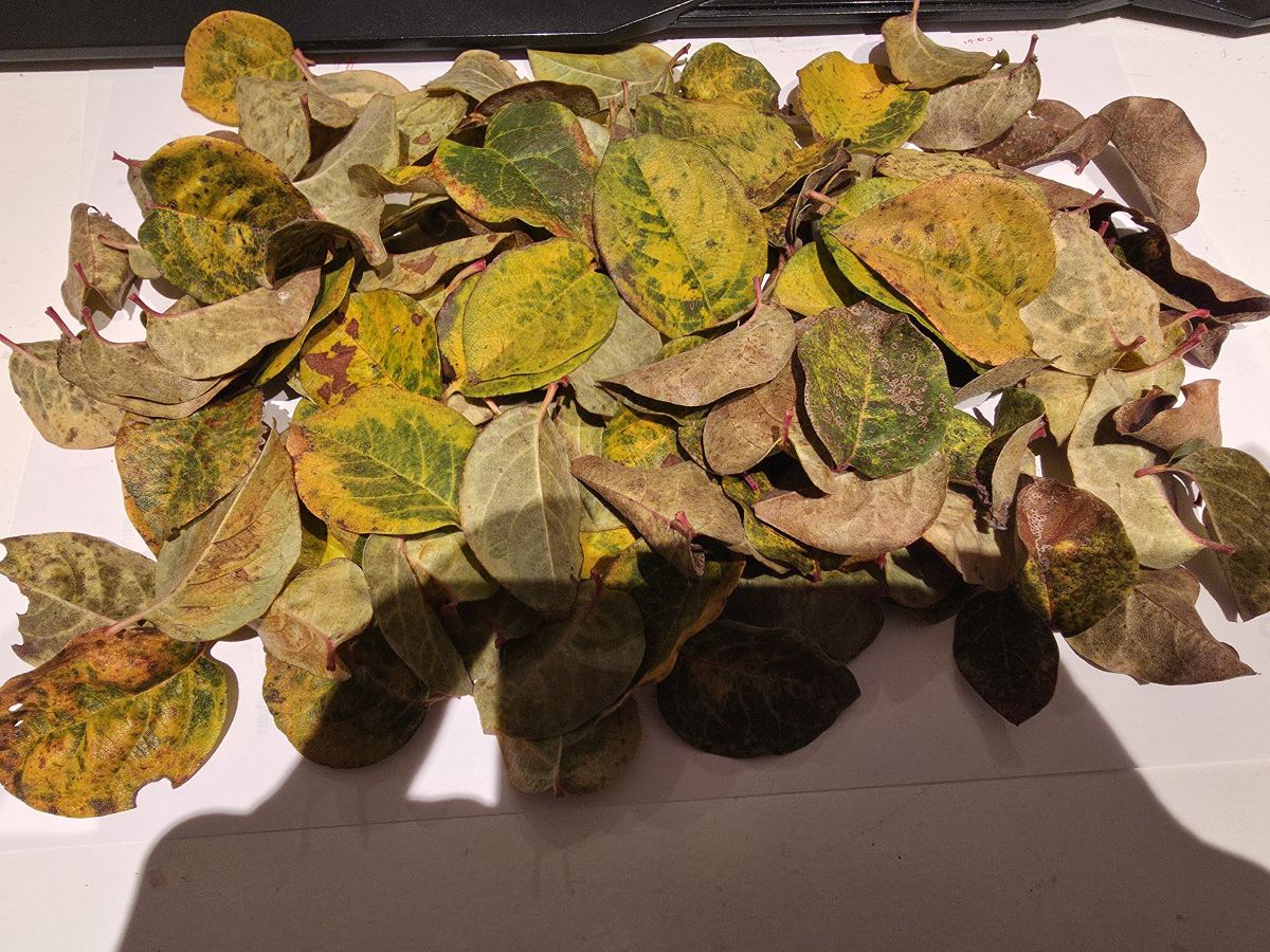 Dat vroeg ik gisteren ook in het oogsttopic. Deze bladeren waren maandag geplukt en de foto is van dinsdagavond.