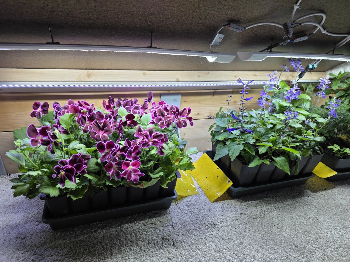 Dit zou mijn tijdelijke opstelling zijn, maar wellicht is dat niet zo tijdelijk als ik gehoopt had. Dit staat er al een maandje of 2. Onder 60cm 2400 lumens battens, plus een lange led strip die iets minder krachtig is. Ik heb wel het plastic kapje van de batten af gehaald, dan wordt het licht iets minder tegen gehouden. De batten wordt dan wel wat minder sterk (krom). Ik heb ook nog wel wat foto's van vorig jaar, o.a. van de bergbasilicum in het bergbasilicum topic. Zit er ook mooi uit.