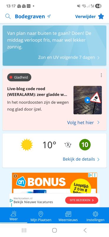 Hier is het 10 graden, maar zoals op de 2e screenshot te zien is (van een kwartier geleden) ligt er in het noorden nog steeds ijzel🥶
