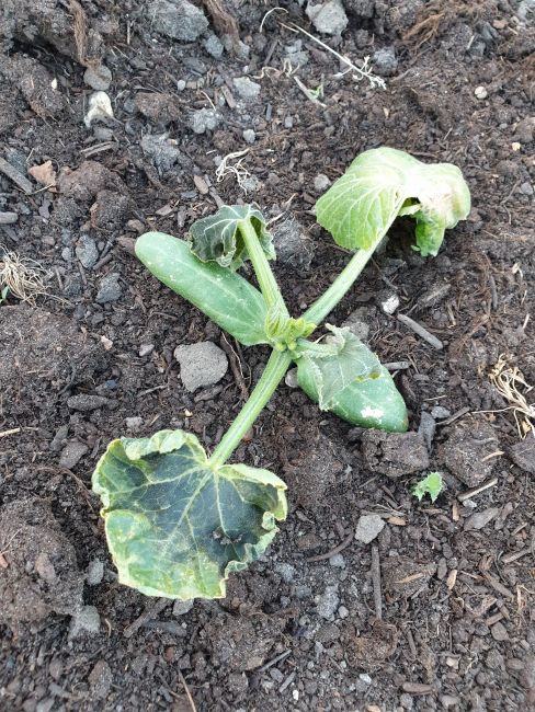 Er is dus zeker nachtvorst geweest, concludeer ik als ik mijn pompoenen en courgettes zie. Een aantal heeft zwart blad, gelukkig niet allemaal.