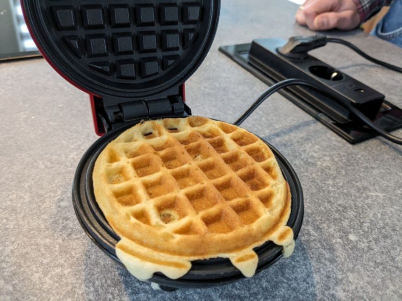 Wafels! Ik had ze nog nooit gebakken want geen wafelijzer. Vond ik afgelopen week een mini exemplaar bij de kringloop. Hij doet het prima en ze zijn zalig!