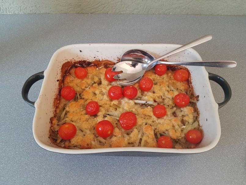Oh dat klinkt heerlijk zeg! En toetje ook! Hier opnieuw courgette (panne)koekjes want daar worden de kinderen zo blij van. Dit keer met een knolvenkel gratin met wat tomaatjes erbij. Smaakte erg goed!