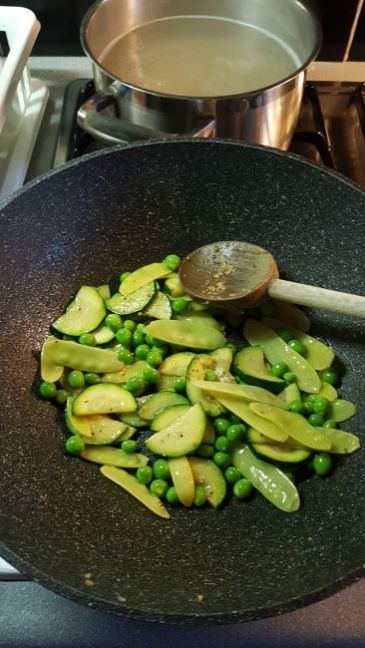 Alvast lunch gemaakt voor morgen op het werk omdat ik ook savonds nog moet werken en ergens ook nog gezond wil eten.. Heb er nu al zin in! Volkoren pasta met peultjes, doperwtjes en courgette uit eigen tuin!