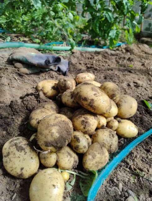 Aardappelen en kamille bloemen