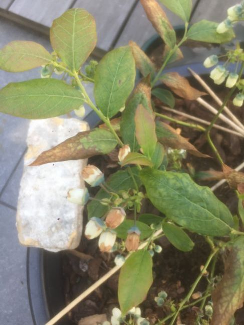 Ik heb dit voorjaar 2 blauwe bessen plantjes in 60 liter potten geplant. Een Bluecrop en een Elliot. Sinds vorige week na de paar dagen met flinke regen, gaan er ineens een hoop balderen van de Bluecrop dood. Bij de elliot is niks aan de hand. Allebei de planten hebben goede afwatering en boomschors als Mulch.