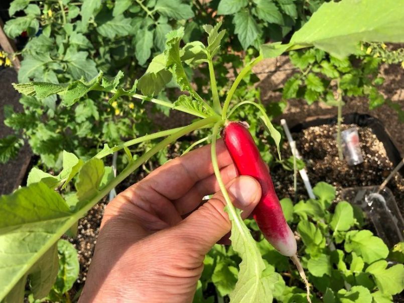 Mijn reuzeradijzen zijn klaar. Ik zou ze het liefst in de grond laten om er elke dag enkele te gebruiken, maar dan worden ze voos omdat het er meer zijn dan ik in een paar dagen eet. Ik weet dat ze zonder loof in een bakje water het langst goed blijven, maar dat is ook maar voor een paar dagen. Dus: 1. zo lang mogelijk in de grond en 2. vervolgens in een bakje water. Ondertussen uitdelen en flink dooreten. Mijn vraag: hoe lang kan ik ze in de grond laten zitten zonder dat ze voos worden?