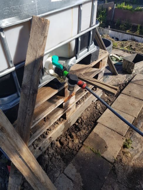 Hierbij de foto's en schijnbedriegd de sprong in het diepe genomen. Druppelslang rainbird op ibc tank werkt perfect. Zie foto's!