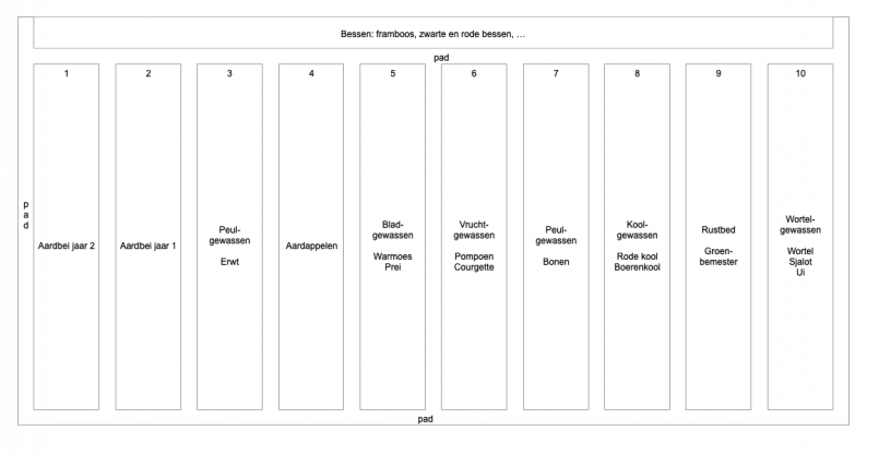 2. Beste leden ik ben nieuw hier en heb samen met de vrouw 3 jaar geleden een huis met tuin gekocht. na 3 jaar in de serre te telen wil ik komenden winter de voorbereidingen doen om volgend voorjaar met de moestuin te starten in bijlage een voorlopig teeltplan voor wisselteelt. wat denken jullie ervan. zijn er opmerkingen of adviezen?