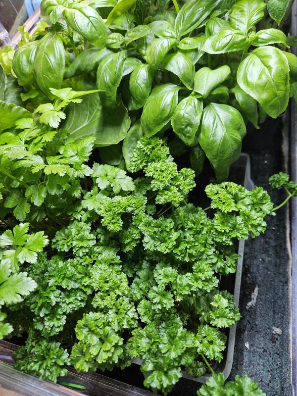 Als vervolg op de testjes, wat kan je nog onder die led battens groeien. Poging met paksoi in p11, stengels zijn wel wat smaller maar schiet niet op en de plant groeit telkens opnieuw bij, een beetje als pluksla. . peterselie en platte peterselie