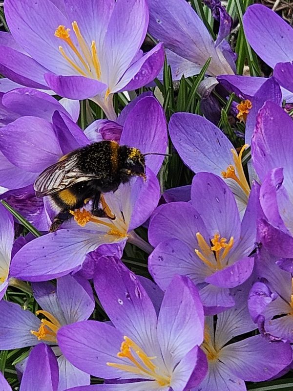 Idem hier, vooral hommels. Voor de sneeuwklokjes is het hier al te warm, zowat uitgebloeid en beginnen zaaddozen te vormen.