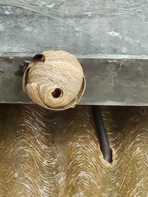 @BertM Europese hoornaars zijn alleen wettelijk beschermd in Duitsland en delen van Oostenrijk , Zwitserland en dit omdat ze ooit door menselijk ingrijpen (jaren 80) in bepaalde gebieden vrijwel waren uitgestorven. Hier in Limburg komen ze gewoon frequent voor, elk jaar zit er hier wel ergens een nest in of in de omgeving van de tuin, ze zijn heel nuttig en eigenlijk niet agressief, als je niet in de buurt komt. Ik laat ze dus zitten, ik zie ook geen effect op de andere bijtjes/ hommels en bestuivers in de tuin. Dit jaar zat een nest echter vlak boven een vaak gebruikte deur (te gevaarlijk) en in België kan je ze gewoon zonder probleem laten weghalen/vernietigen. Bij mijn ouders in Oost-vlaanderen verwonderden we ons waarom er dit jaar zo extreem weinig bijen /hommels op de bloemen zaten (zo goed als geen), je zag er continu een Aziatische op jacht. Op het aanpalend bedrijf was al 2 keer (lente en eind augustus) iemand gekomen om een kleine/beginnende nest Aziatische hoornaars te verwijderen. Uiteindelijk een aantal weken later begin september vonden we een nest in oud opslag gedeelte ter grootte van een strandbal, blijkbaar kan dit bij een verhuis in de zomer van de nest vrij snel van 0 heel groot worden, ook hier geen last van aangezien niemand daar direct of vaak in de buurt kwam, maar het had een heel grote invloed op de bestuivers in de omgeving. Ik verwacht nog meer last van die in de toekomst en zie ze in tegenstelling tot de Europese niet graag komen in de tuin hier en dus ook fan van de selectieve vallen. foto is wazig, van ver vergroot genomen, ik durfde niet direct in de buurt komen , moeilijk te zien maar is echt ter grootte van een strandbal, rondom balk verweven. beginnende