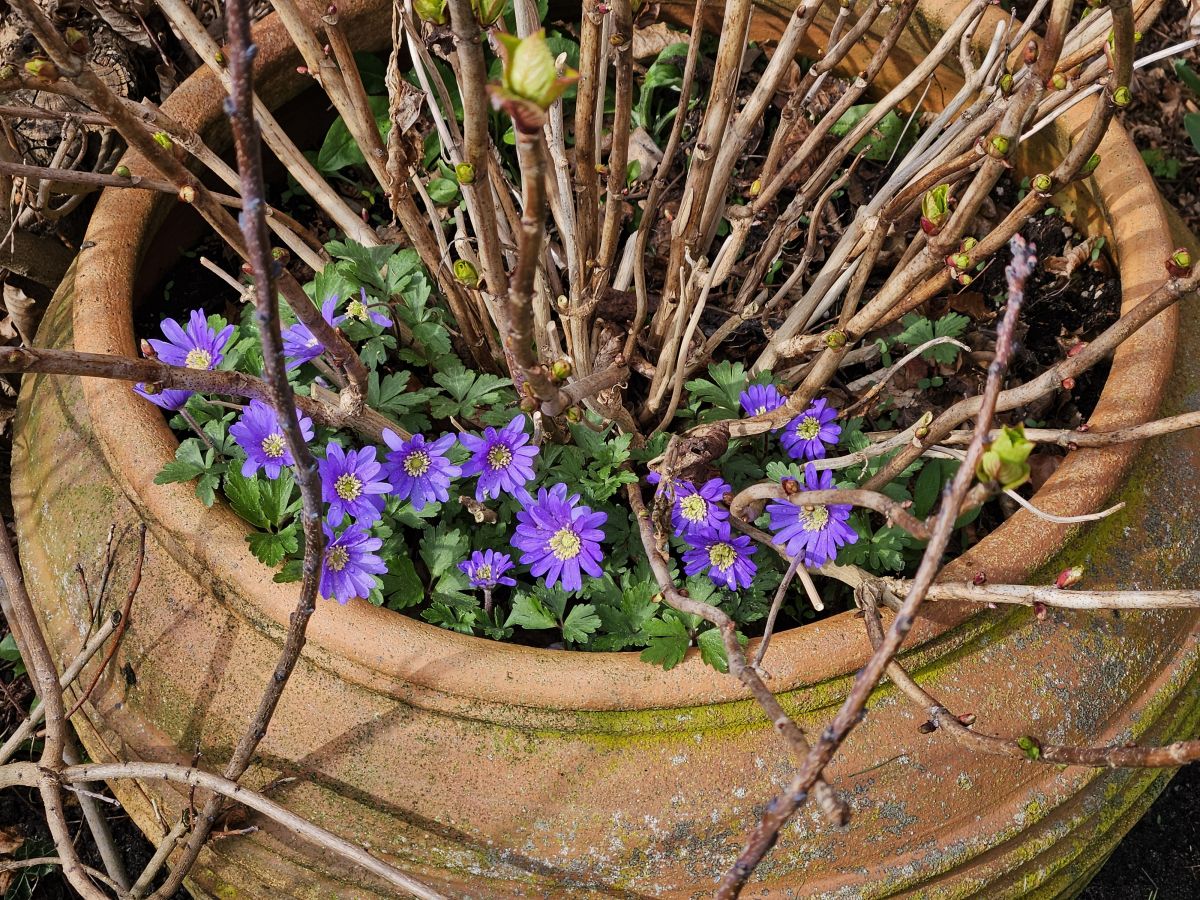 Lavas die begint, dan gaat het snel. en @Erny ja speenkruid, dat is voor mij ook echt een teken van de lente. Een enkele is pas open, maar de rest zal snel volgen. blauwe anemoon (staat ook los in de tuin, maar lijkt hier beter uit te breiden in pot)