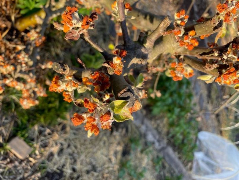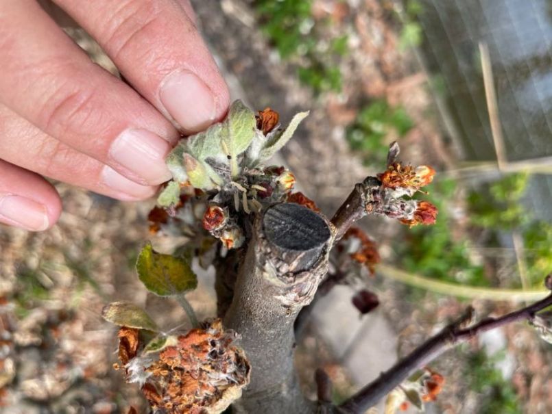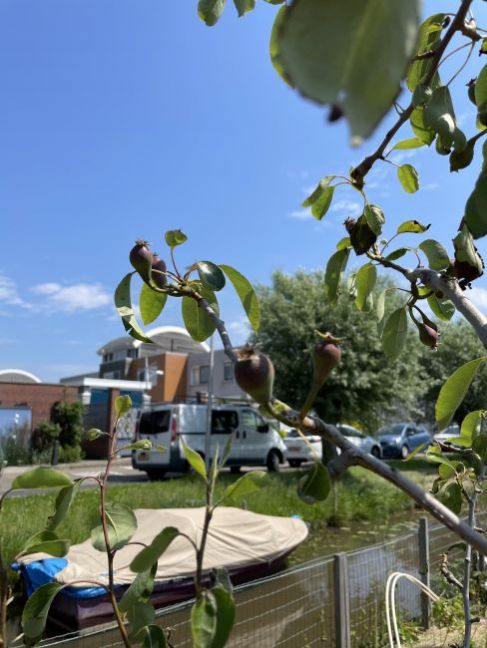 Goedendag, In onze moestuin staat een API Noir Appelboom. Deze heb ik in de winter van 2020 gekregen van de buurvrouw en verplaatst naar mijn tuin. Afgelopen jaar deed deze het prima al werden de appels niet heel groot. ik dacht eerst dat dit wellicht door de koude zomer kwam en door het verhuizen. Dit jaar begon de boom rijkelijk te bloeien en wat ik verheugd met de rijkelijke bloesem maar na een paar weken begint alles bruin te worden en komen er geen blaadjes meer aan. Nu zitten er ook heel veel kleine witte rupsjes in. deze had ik niet eerder gezien als gisteren dus ik weet niet hoelang deze er al inzitten. Kan dit de oorzaak zijn van de sterfte? Ernaast staat ook een appelboom. een Malus domestica 'Gloster' die zou de Api Noir moeten bestuiven. Die doet het prima. Groetjes, Ronald PS: ik krijg de fotos niet gedraaid. Geen idee waarom, op de computer zijn ze wel normaal.