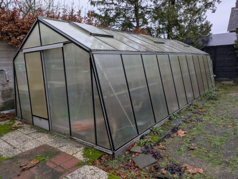 Voorlopig exclusief voor mijn MTF-vrienden biedt ik de professionele polycarbonaatkas aan die bij ons nieuwe huis staat. Volledig compleet uitgevoerd en gebruikt voor orchideeënteelt door oud-hovenier. Heeft dus een kachel in gestaan en staat vol met kweektafels e.d. die allemaal over genomen kunnen worden. Prijs is nader overeen te komen. Geen idee hoe oud de kas is, ik kon de leverancier niet meer terugvinden via Google, maar het geheel staat enorm stevig. Mocht je interesse hebben, stuur me dan een PB. Ik kan ook nog wat detailfoto's maken op een later moment. Ik ben bereid te helpen met afbreken, voorlopig zijn we toch nog aan het verbouwen.